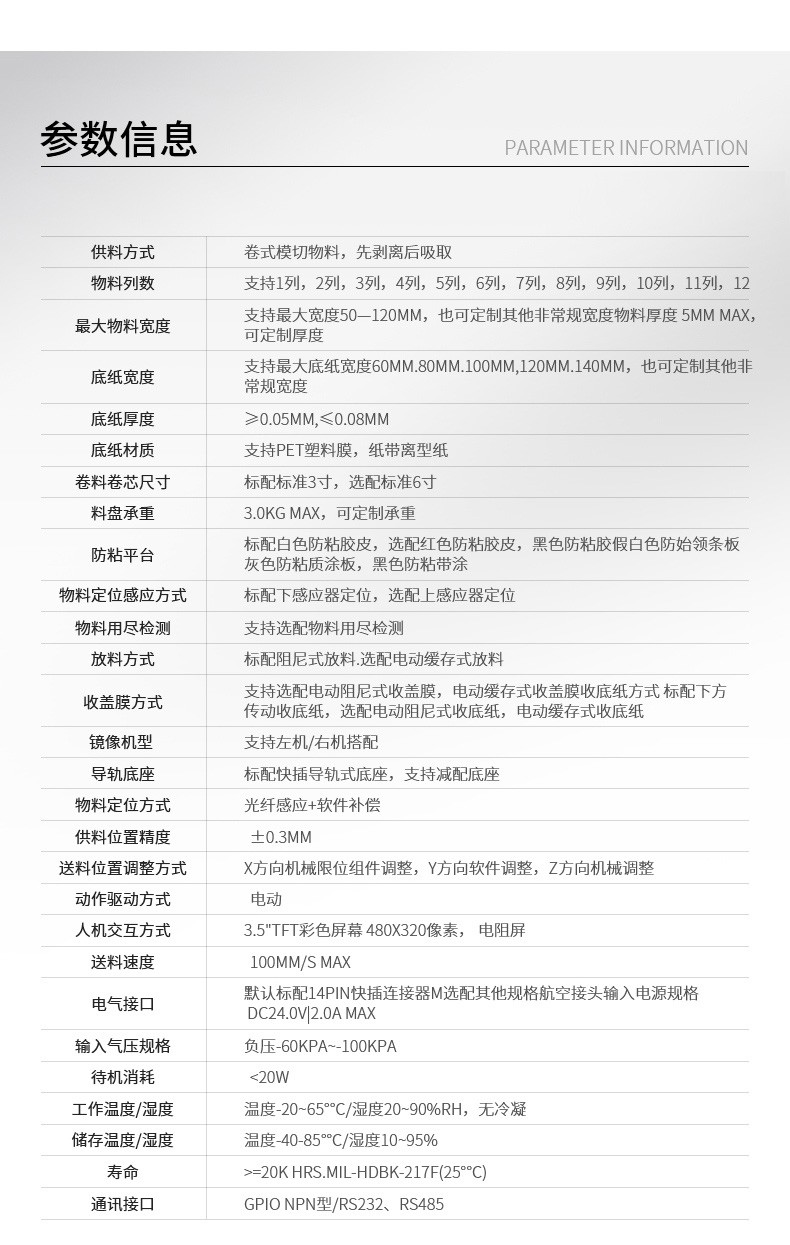 专业输送单排/多排标签、手机辅料、FPC 补强/绝缘材料,配合标签贴装设备、手机辅料贴装设备、FPC 补强机等...